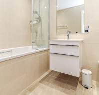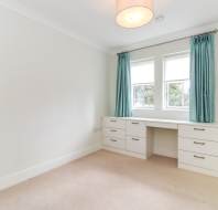 Guest bedroom has built-in wardrobes and fitted dressing/office table. The apartment has a fully equipped SieMatic kitchen with integrated Neff appliances including Neff fridge/freezer, Neff fan assisted oven, hob, dishwasher and washer/dryer