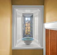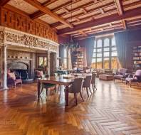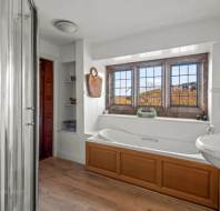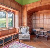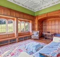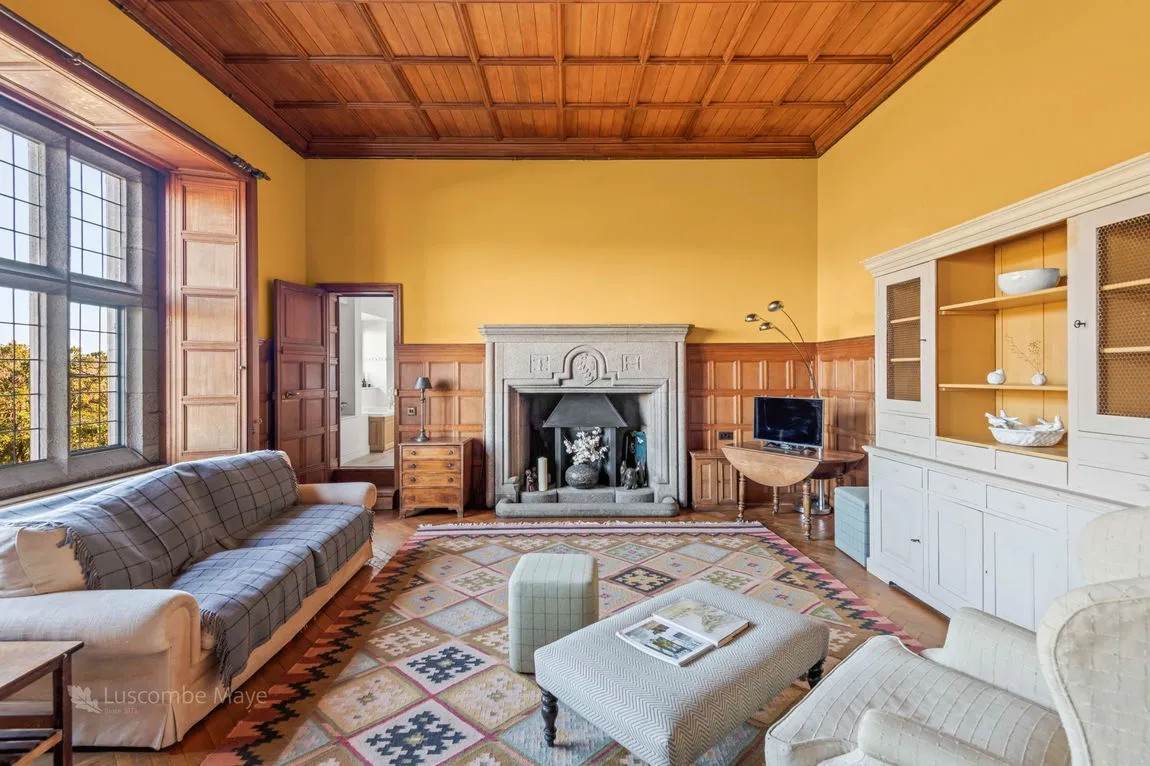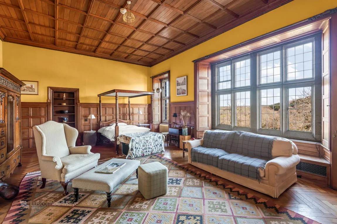 On the ground floor, the generous sitting/dining room features elegant panelled walls and classic parquet flooring, matched upstairs by a similarly well-proportioned bedroom on the first floor. Both rooms are designed with timeless character and comfort in mind. Framed by granite mullion windows with beautiful oak shutters, the views across the estate are truly exceptional—inviting the outside in and enhancing the tranquil atmosphere of this special home.